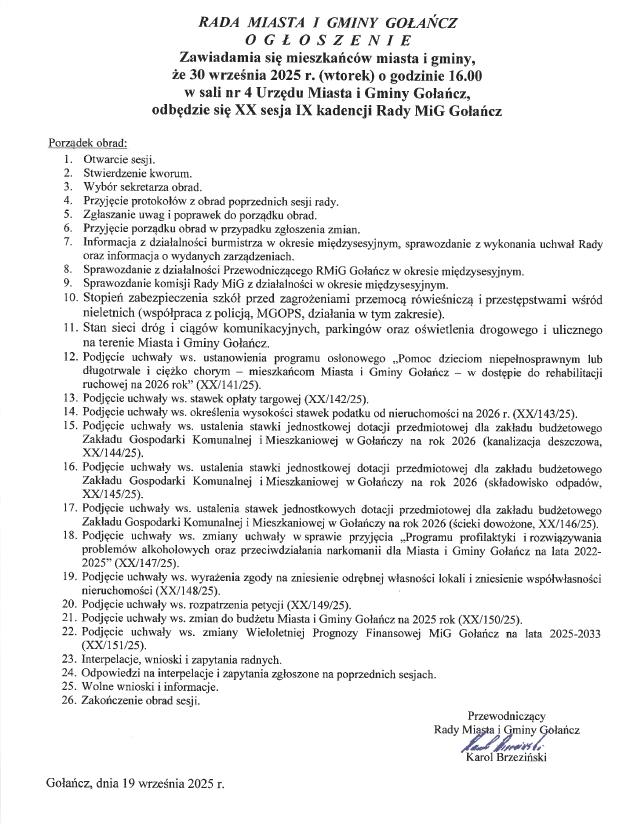 XX sesja IX kadencji Rady MiG Gołańcz