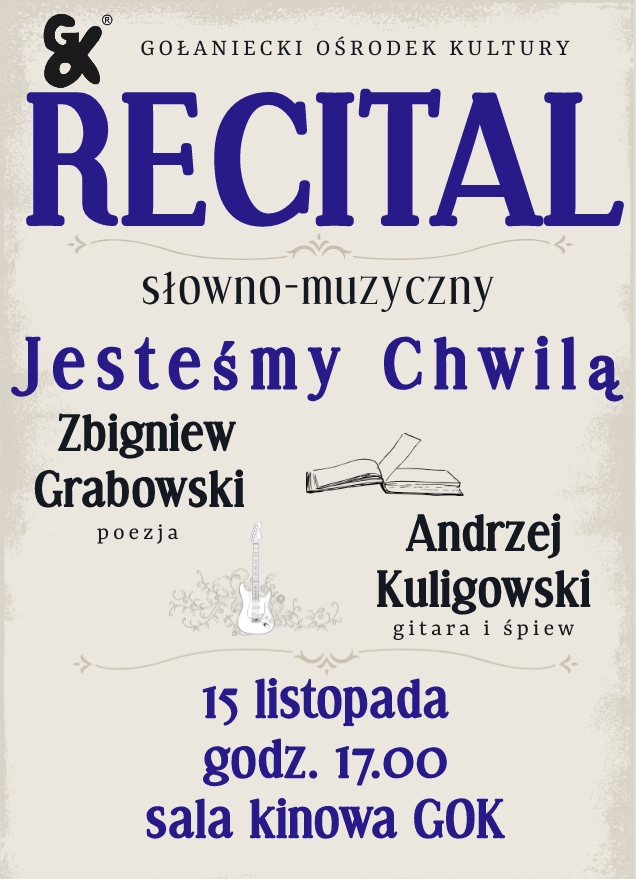 Szanowni Państwo, mamy zaszczyt zaprosić na RECITAL w wykonaniu Zbigniewa Grabowskiego i Andrzeja Kuligowskiego.
